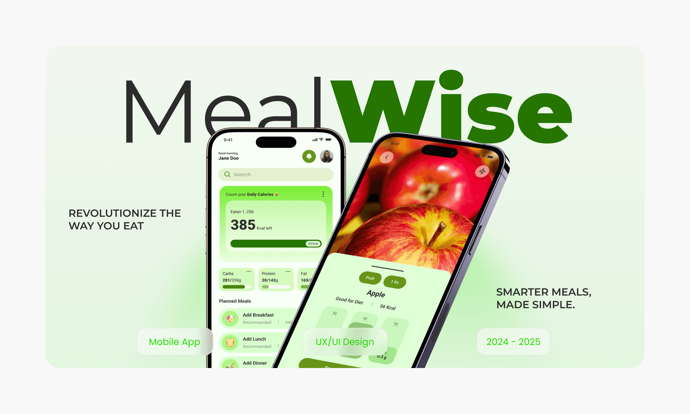 The task was to design a nutrition-first meal planning experience that simplifies healthy eating by guiding users from meal decisions to portion control and grocery planning, while keeping the experience intuitive, practical, and easy to sustain in everyday life.